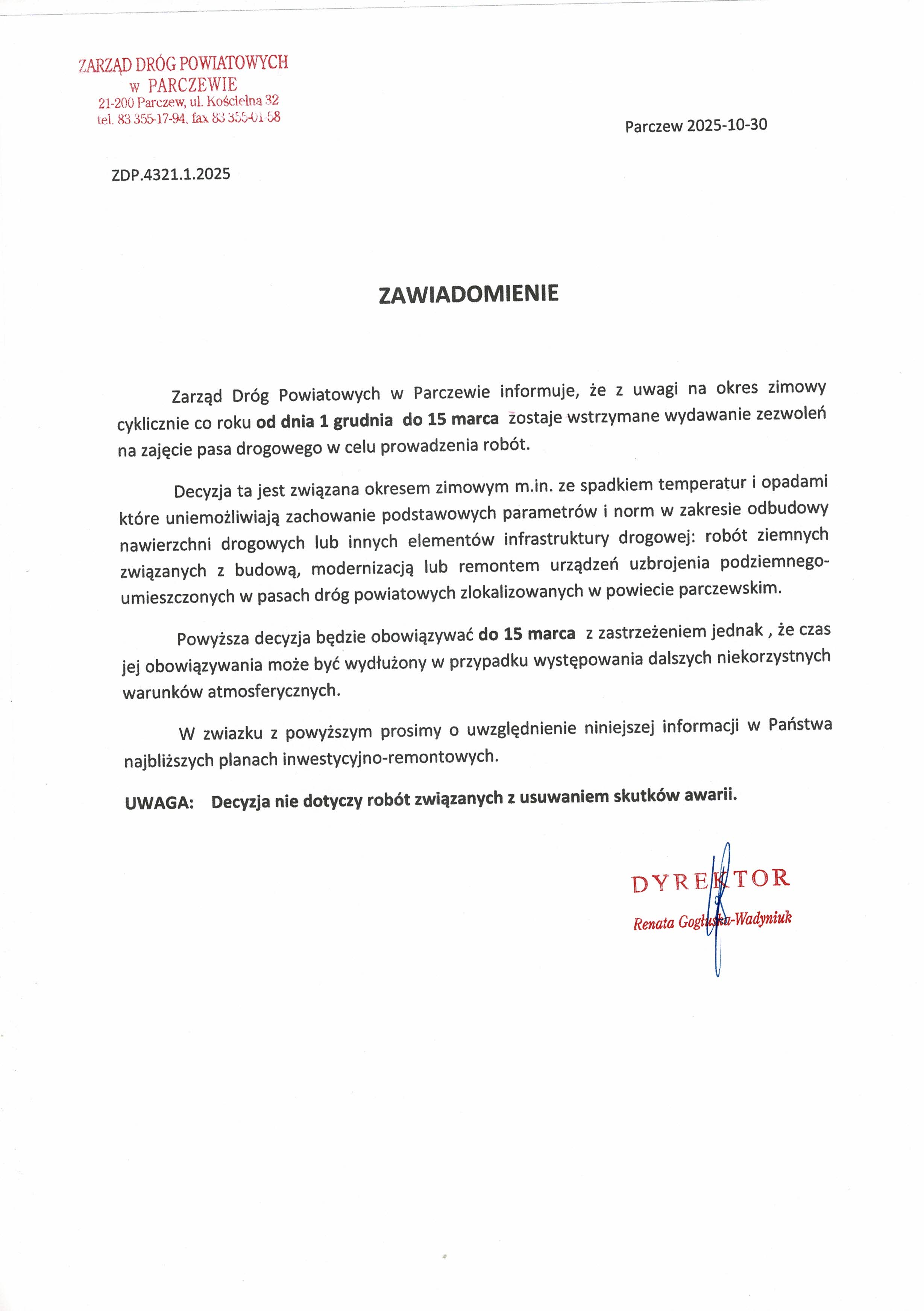Zarząd Dróg Powiatowych w Parczewie - informacje